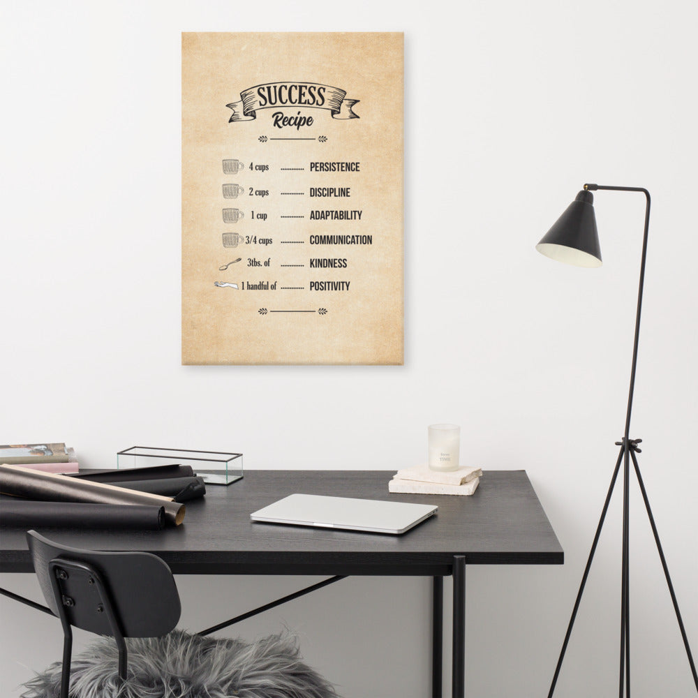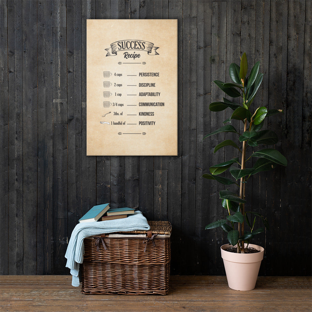 The Success Recipe artwork serves as a daily reminder of the essential ingredients for success. Whether you're an entrepreneur, student, or professional, this canvas wall art is a source of inspiration that encourages you to reach new heights and achieve your goals.